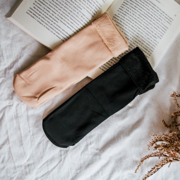 Medias cortas efecto piel, con peluchito adentro y lisas por fuera.